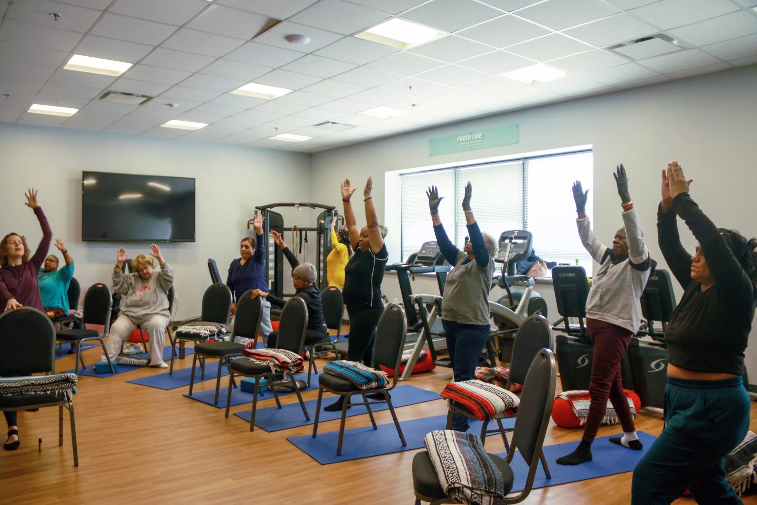 Little Red Door offers a variety of yoga classes, free of charge for clients. Each class is designed to help boost your bone health and balance as well as lower stress hormones. Each class is inclusive for all ability levels!
